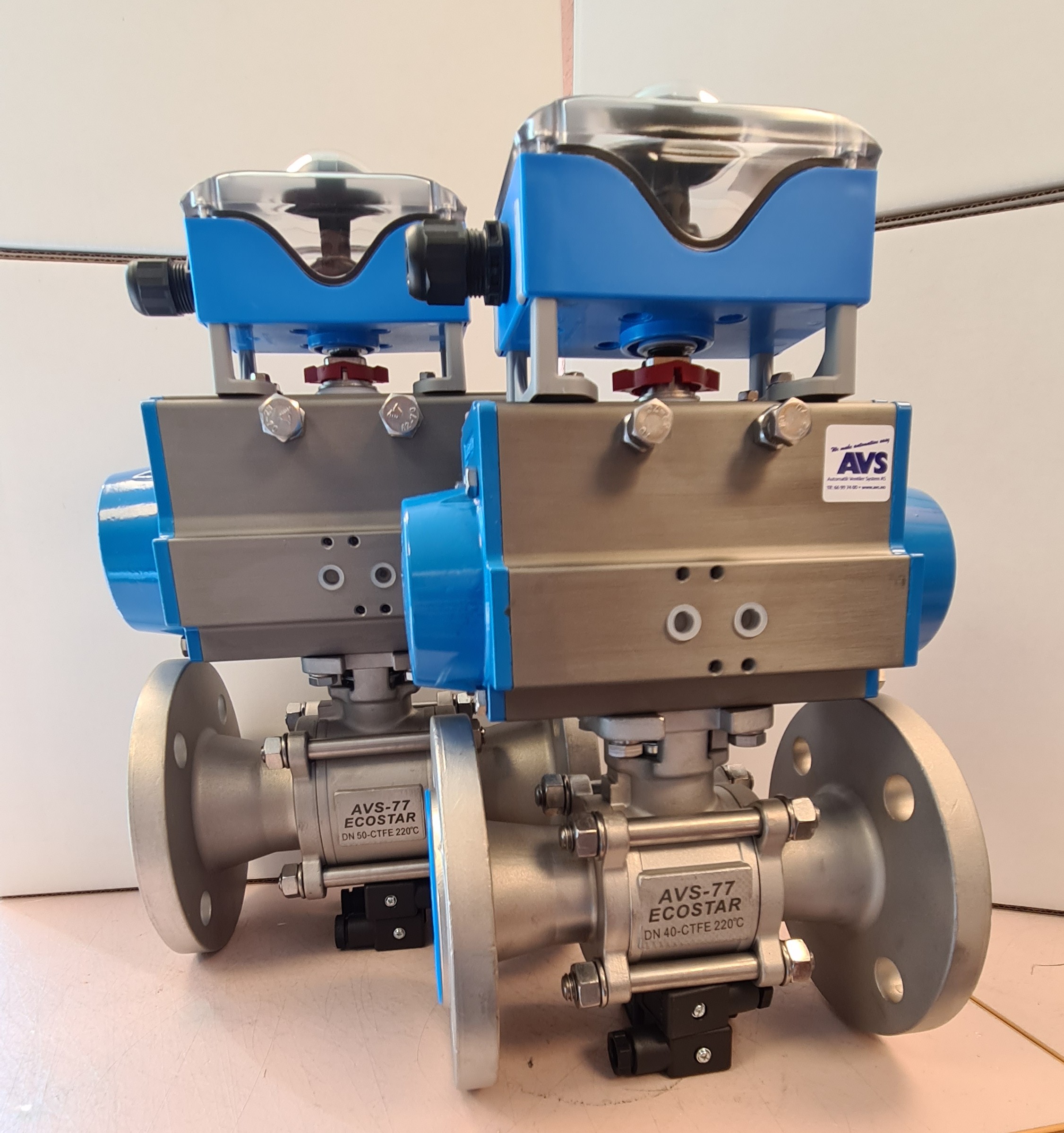 Syrefast 3-delt ventil med flenser og dobbeltvirkende aktuator til papir industrien